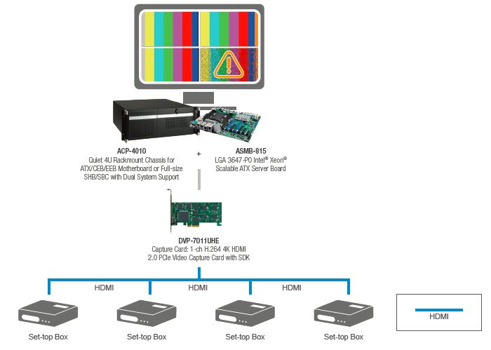 | 4K視頻輸出檢查的自動化解決方案 時間:2020-4-26 17:38:05  介紹 這家具有HDMI輸出的4K機(jī)頂盒制造商以前采用了傳統(tǒng)的產(chǎn)品檢查方法,這種方法依靠視覺檢查,并且沒有提供任何方法來提高檢查的準(zhǔn)確性,可檢查的項(xiàng)目類型或可檢查的項(xiàng)目數(shù)量。檢查。因此,客戶試圖通過利用圖像處理來實(shí)現(xiàn)自動檢查。該解決方案由研華IPC和多通道4K HDMI視頻捕獲卡組成,它們允許單個系統(tǒng)捕獲和檢查來自多個機(jī)頂盒的視頻輸出,該系統(tǒng)同時收集檢查數(shù)據(jù)以確保視頻輸出并提高產(chǎn)品質(zhì)量。 系統(tǒng)要求 在實(shí)施該系統(tǒng)之前,它需要手動操作來檢查多種機(jī)頂盒輸出格式,并依靠肉眼確定視頻輸出的準(zhǔn)確性。此方法是主觀的,容易出錯。它無法驗(yàn)證許多顯示模式。此外,沒有詳細(xì)的統(tǒng)計(jì)信息可以使制造商更好地了解產(chǎn)品質(zhì)量或驗(yàn)證結(jié)果。 客戶希望在單個系統(tǒng)中利用圖像檢測來連接多個機(jī)頂盒,以便自動檢查可以同時驗(yàn)證來自多個機(jī)頂盒的4K HDMI視頻輸出。此外,制造商可以預(yù)加載視頻輸出模式的測試模式以運(yùn)行其他質(zhì)量驗(yàn)證??梢源鎯σ曨l輸出的所有缺陷,以減少缺陷損失并提高良率。 系統(tǒng)描述 選擇了DVP-7011UHE采集卡作為要集成到系統(tǒng)中的圖像采集設(shè)備。DVP-7011UHE能夠捕獲HDMI 2.0視頻輸入并支持4K分辨率(最高4096x2160),與主流機(jī)頂盒的視頻輸出格式相當(dāng)??梢栽趩蝹€系統(tǒng)中安裝多個DVP-7011UHE卡,以捕獲來自多個機(jī)頂盒的視頻輸出,并可以進(jìn)行大規(guī)模的自動檢查。 此外,客戶端需要一個SDK,以便他們可以根據(jù)需要快速開發(fā)應(yīng)用程序。該SDK支持基本功能,例如圖像捕獲和記錄,并且具有Intel和NVIDIA GPU硬件加速指令集,可大大提高自動檢查的效率。因此,可以在圖像處理和顯示比較方面更有效地管理CPU資源,以滿足機(jī)頂盒的質(zhì)量保證需求。 完整的解決方案包括ASMB-815服務(wù)器主板和Xeon CPU以及多達(dá)五個DVP-7011UHE圖像捕獲卡??ㄉ系腍DMI視頻輸入會捕獲來自機(jī)頂盒的HDMI 2.0信號,然后使用SDK開發(fā)的應(yīng)用會檢查視頻信號,從而有效地實(shí)現(xiàn)了全自動的檢查過程。 項(xiàng)目實(shí)施 ACP-4010:安靜的4U機(jī)架式機(jī)箱,用于ATX / CEB / EEB主板或具有雙系統(tǒng)支持的全尺寸SHB / SBC ASMB-815:LGA 3647-P0英特爾®至強(qiáng)®可擴(kuò)展ATX服務(wù)器主板,具有6個DDR4、5個PCIe x8或2個PCIe x16和1個PCIe x8、8個SATA3、6個USB3.0,雙10GbE,IPMI新 DVP-7011UHE:采集卡:帶SDK的1通道H.264 4K HDMI 2.0 PCIe視頻采集卡 系統(tǒng)圖  結(jié)論 許多視頻輸出設(shè)備制造商已嘗試實(shí)施自動檢查程序,以代替批量生產(chǎn)中使用的手動視覺檢查。當(dāng)設(shè)備具有不同的視頻輸出接口并需要專門的檢查過程以檢查不同的視頻輸出格式時,尤其如此。筆記本電腦,機(jī)頂盒,視頻播放器,醫(yī)學(xué)成像設(shè)備和視頻轉(zhuǎn)換器等設(shè)備可以在視頻輸出檢查中利用自動圖像處理功能。隨著4K視頻設(shè)備變得越來越普及,圖像捕獲卡通過捕獲4K圖像并在檢查系統(tǒng)中比較圖像,在自動化方法中發(fā)揮了關(guān)鍵作用。圖像采集卡可以提高生產(chǎn)能力和產(chǎn)量,并減少目視檢查涉及的風(fēng)險。 優(yōu)點(diǎn) 該系統(tǒng)最多可以捕獲五個通道的圖像輸出。這意味著系統(tǒng)可以檢查多個設(shè)備,而不必單獨(dú)檢查每臺機(jī)器。 豐富的SDK資源可用于開發(fā)和硬件性能增強(qiáng):可以使用SDK完成所有圖像處理過程,該SDK提供GPU指令集以提供高性能而又不影響CPU性能。 DVP卡支持不同的視頻接口:除了4K HDMI 2.0外,還可以使用產(chǎn)品在HDMI,SDI,DVI和Composite等接口中進(jìn)行圖像捕獲。 以上案例來自研華官網(wǎng) 后端包裝:自動檢查和分類 |